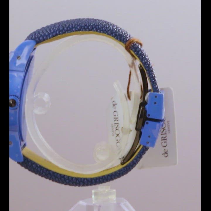 De GRISOGONO's Tondo by Night watches made a dramatic entrance into the world of horology last year, and building on their unprecedented success, the brand has launched a new array of color-popping shades for 2013. The latest blue, red and green models are as bold and colorful as de GRISOGONO's jewels. The Tondo by Night in blue not only looks bright - it shines brightly too. The case is made from pearly photoluminescent composite fiberglass, which soaks up the sun by day and glows a fiery blue by night. Set with 108 electric blue sapphires on the bezel and face, chosen to match the exact shade of the case, it's the ultimate day-to-night accessory.